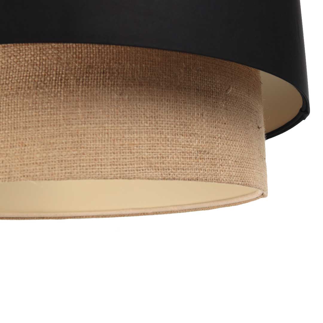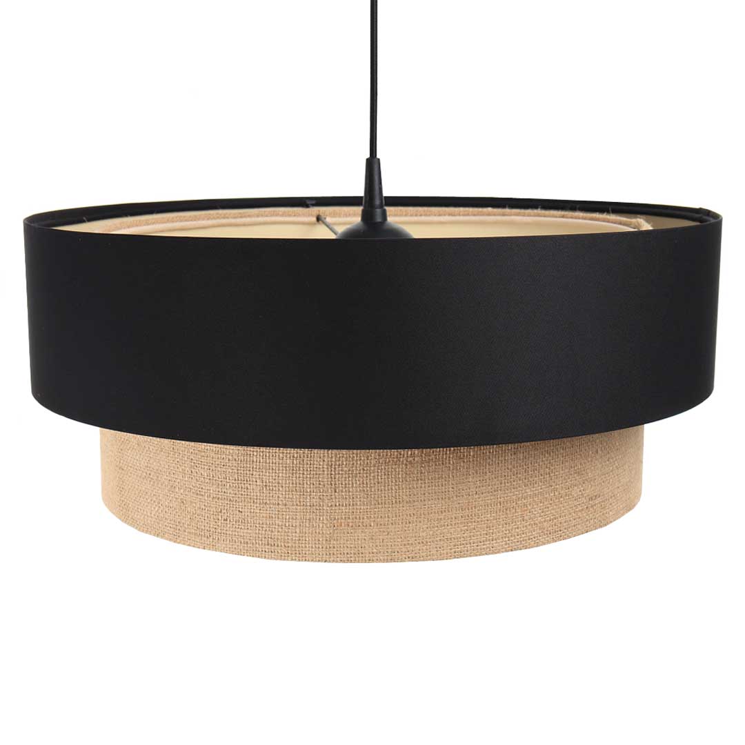 Bež i crna viseća svjetiljka, visilica, sa sjenilima od jute i satena, s krem unutrašnjosti - BOHO