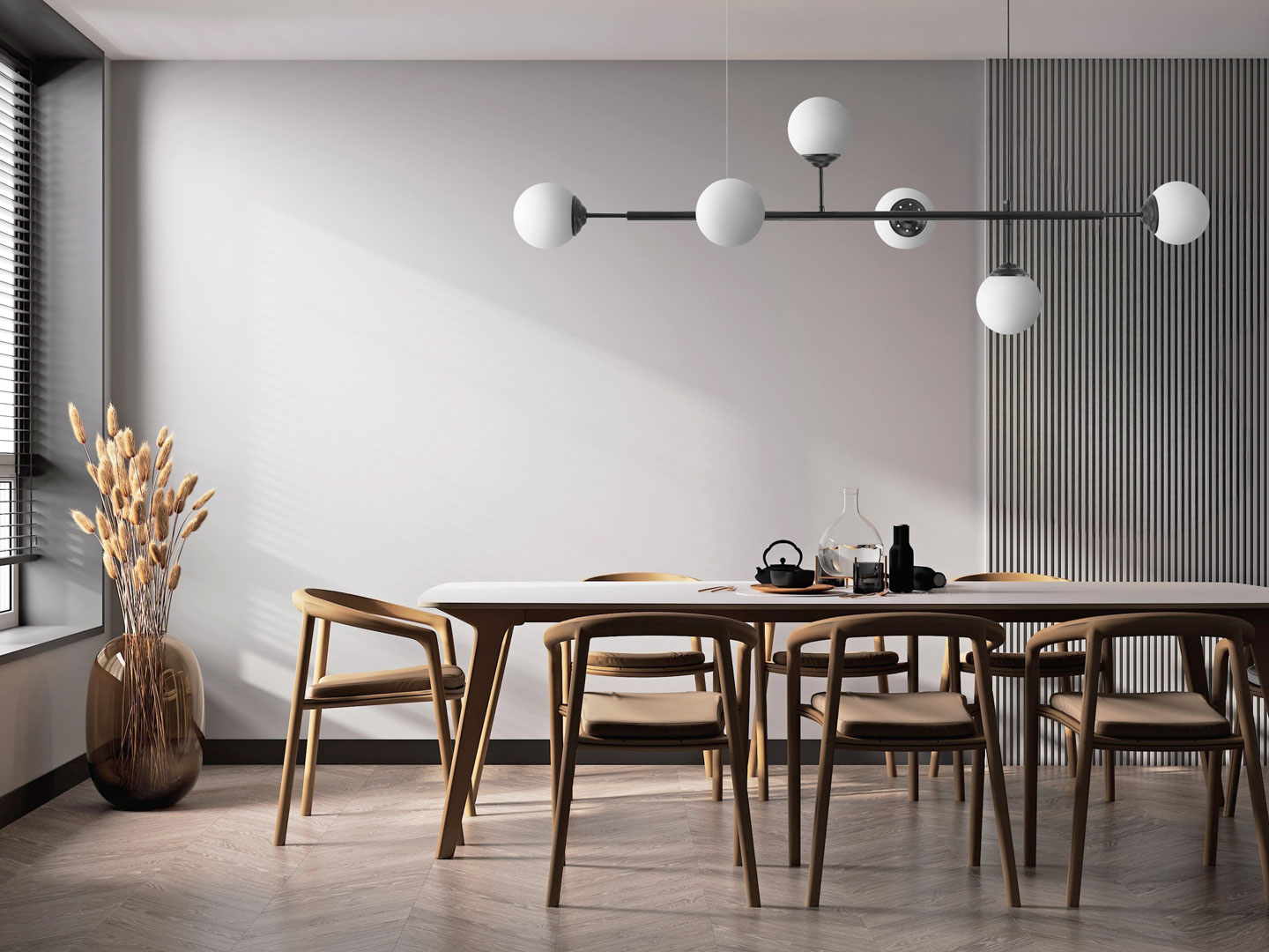 Crni luster, kuglice, viseća svjetiljka, horizontalna greda, dvije okrugle stropne rozete - FINO