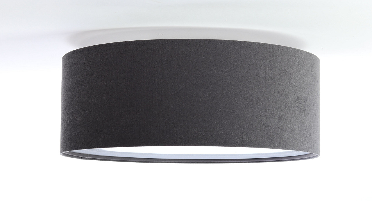 Grafitna stropna lampa, okrugla plafonjera s cilindričnim, velurnim abažurom