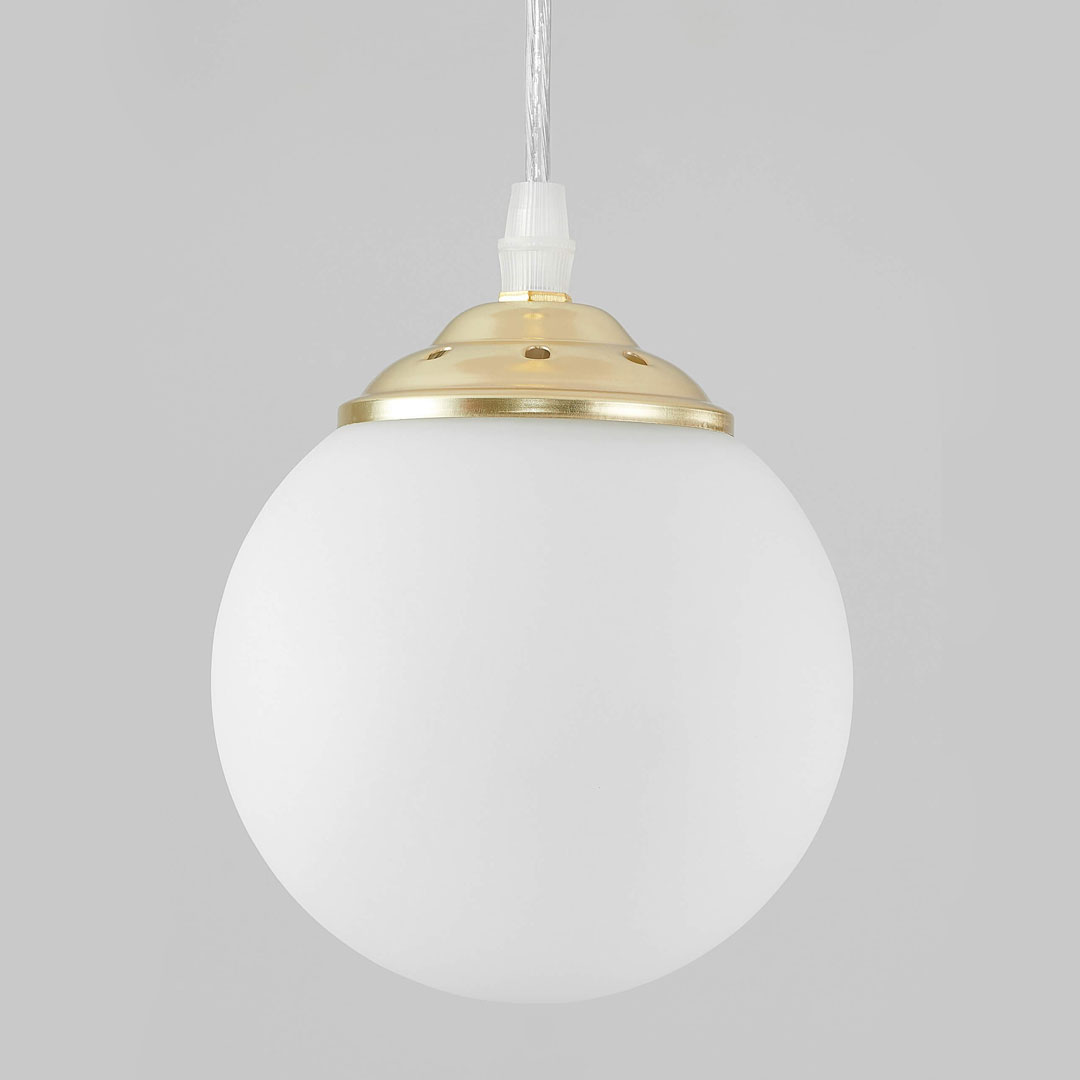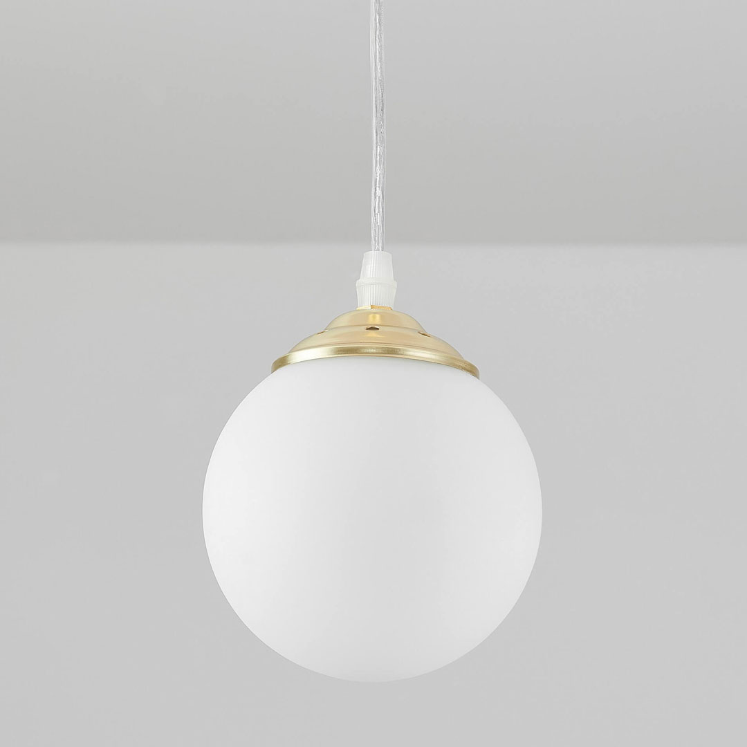 Pojedinačna visilica, zlatna viseća lampa, bijela staklena kugla, kuglasto sjenilo, klasično zlato - FINO W1