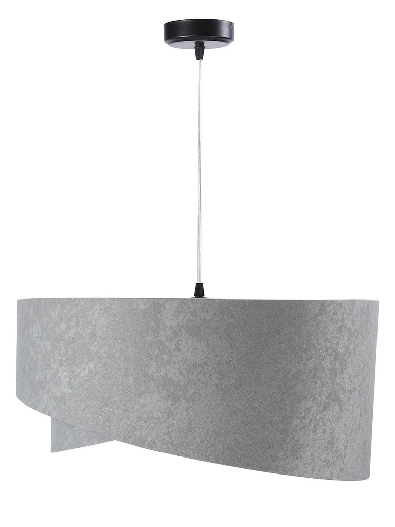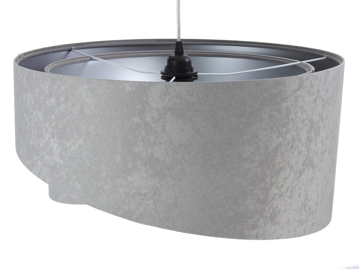 Siva viseća lampa, asimetrična visilica, s velurnim abažurom, sa srebrnom unutrašnjošću - TAMI