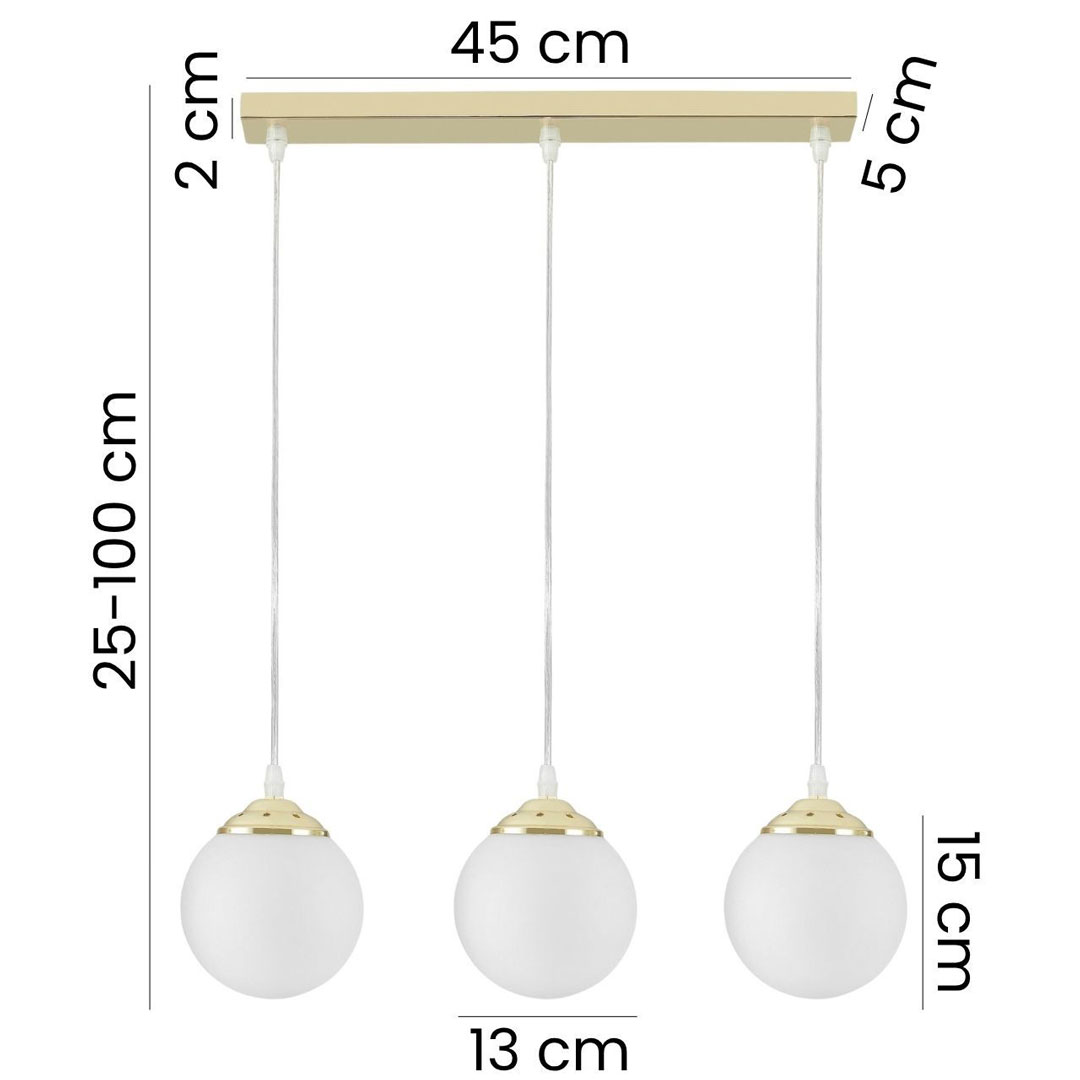Trostruka visilica, viseća svjetiljka iznad blagovaonskog stola, kuhinjskog otoka, bijele kugle, klasično zlato - FINO