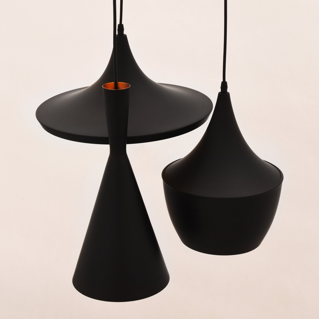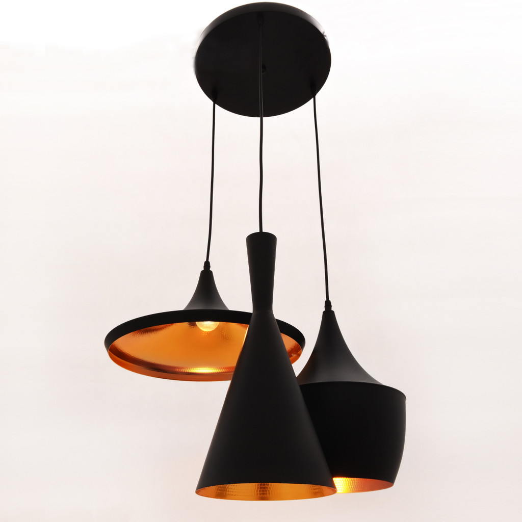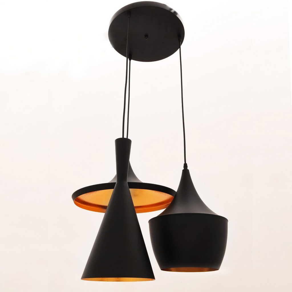 BestseleriNovoAkcijeModerne i modne viseće svjetiljke. Luster sastavljen od tri elementa. Industrijski dizajn u loft stilu. Lampa je izrađena od aluminija, završena u mat crnoj i zlatnoj boji.